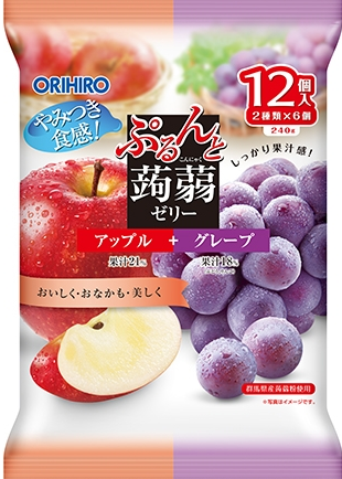🧂 Ingrediente: apă, konjac (glucomannan), suc concentrat de măr și prună, zahăr, conservanți, arome naturale.